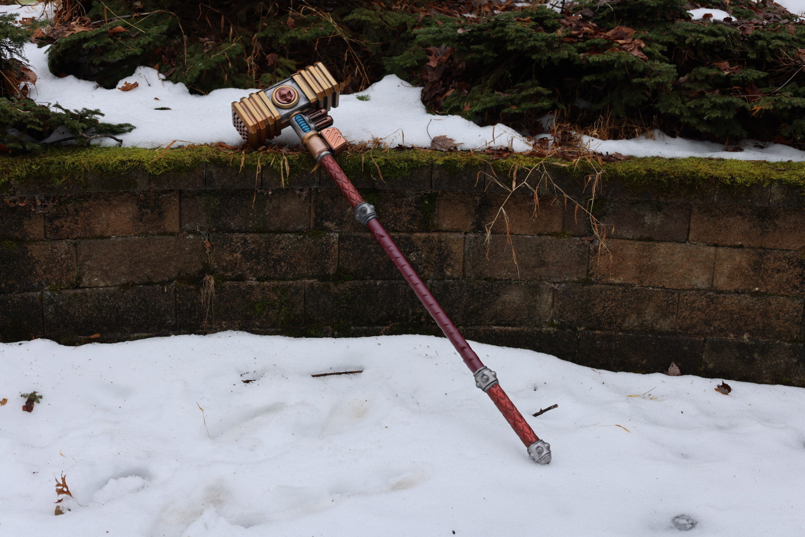 The Impactbreaker Hammer is a heavy industrial sci-fi prop built to look like a tool designed for catastrophic force. With a reinforced hammer head, exposed mechanical detailing, and a long, rugged grip, the Impactbreaker feels less like a ceremonial weapon and more like a piece of demolition equipment repurposed for close-quarters combat.