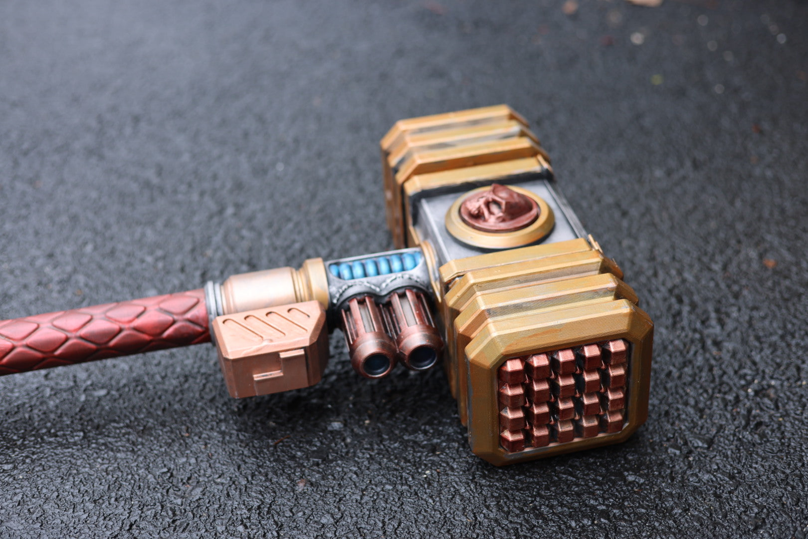 The Impactbreaker Hammer is an original, independently designed prop created by Dorks of Thunder. This product is not affiliated with, endorsed by, or associated with any tabletop game company, video game franchise, or media property. It is intended for cosplay, display, and prop use only.